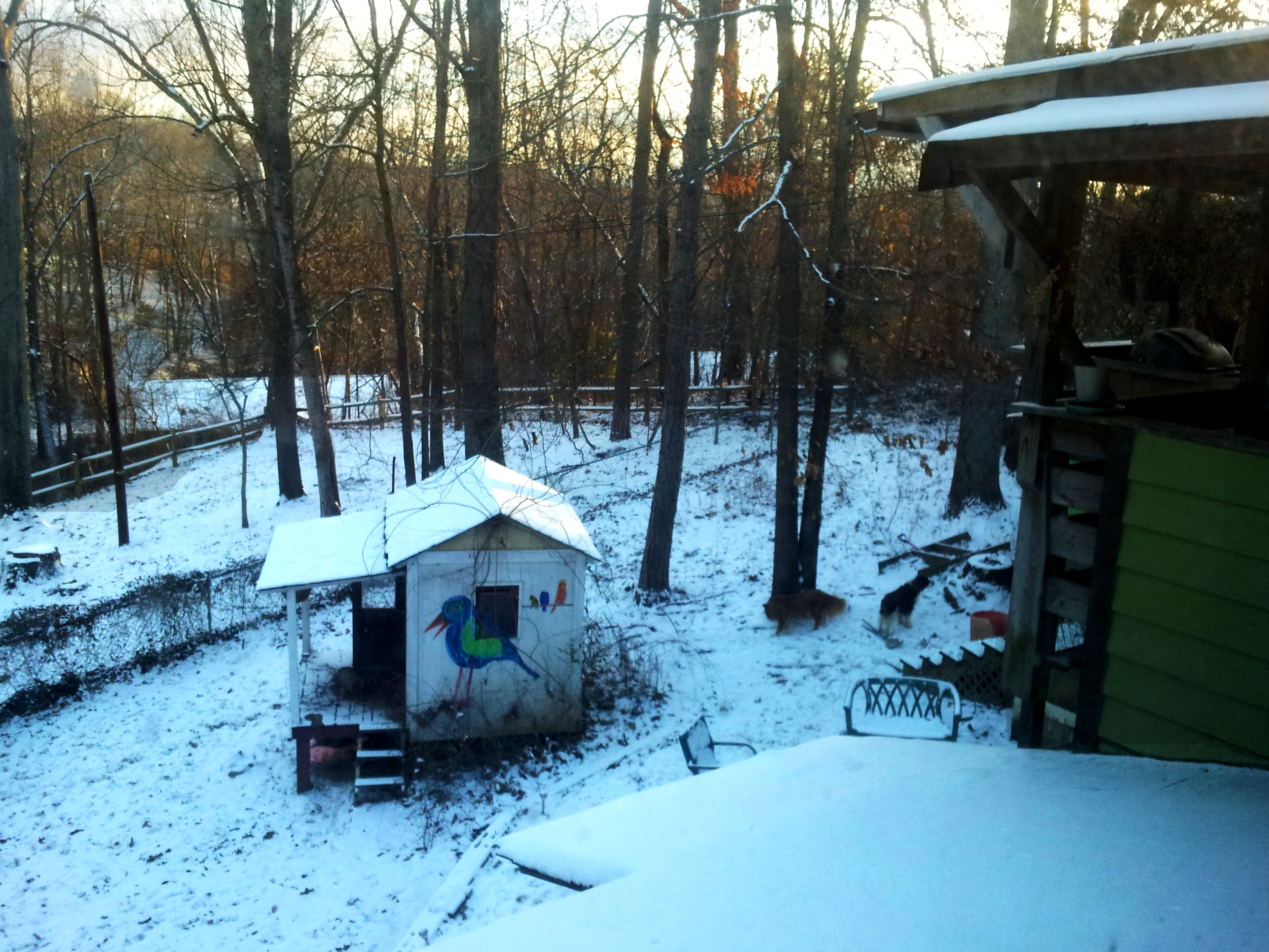Well, I ended up having two snow days in a row. Yesterday we had more snow than we have had in some time – years, really – and the roads got quite bad quite quickly. There is this thing that happens in the NC mountains, and I suppose in the rest of the South, where snow on the roads turns into a layer of ice really super fast. It happened yesterday: not long after I wrote the post below, I got into the car and tried to go to work. Um, no. I made it down the Riverview hill to Amboy Road only to discover that it was just about as slick as Riverview, so I called in, gave up and went home the long way. The long way – about a mile, I guess, maybe a mile and a half, which ordinarily would take about 10 minutes on a really terrible day, took almost 25 yesterday- was sufficiently terrifying that I haven’t left the house since.