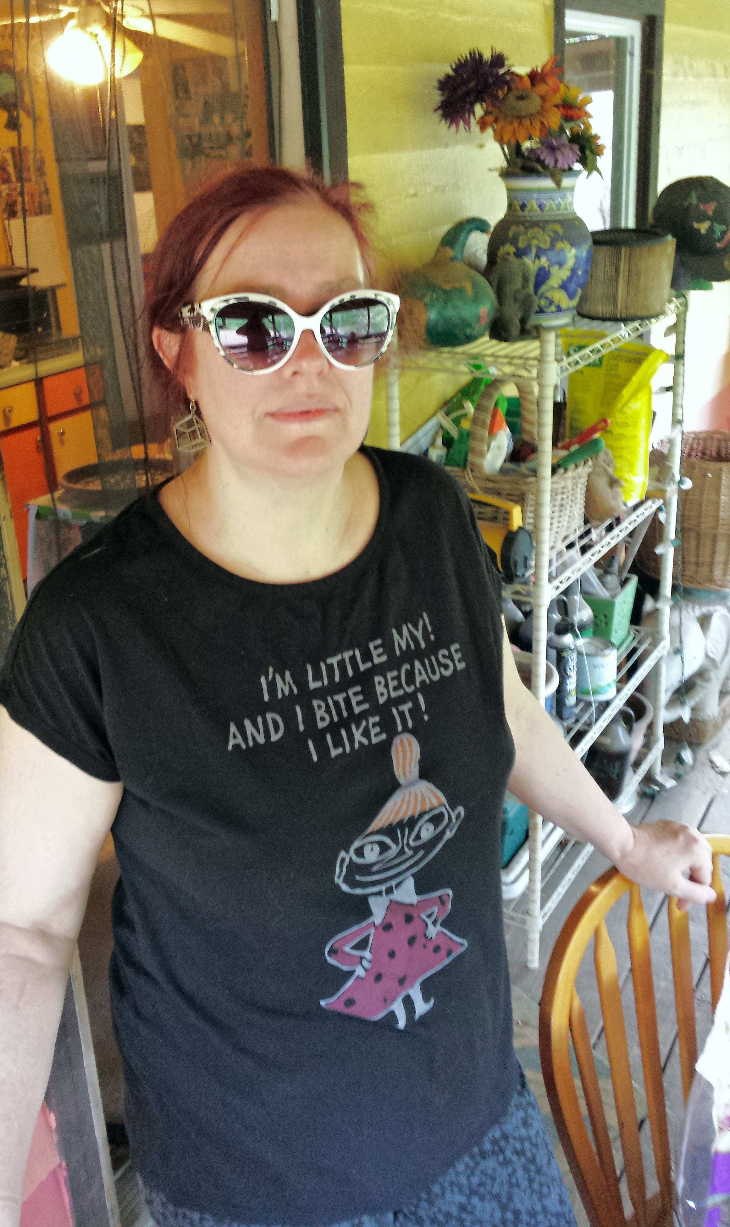 Today is my birthday – yeah, yeah, I know, the fourth is always with me, look, my birthday didn’t used to be so annoying until some genius came up with that Star Wars thing about five years ago – but despite that it has been a lovely day and here I am – as of last night actually – wearing the oh so fabulous sunglasses and earrings that my daughter gave me. Not bad, I think, for an old broad, which is something my father used to say after smacking my mother on the bum. Gently, I mean, gently but with gusto, as it were, and then he would say NOT BAD FOR AN OLD BROAD. And right now I agree, because a) I have engaged in gigandorly self esteem building activities over the last couple of days and b) there has been an outpouring of birthday love that has left me all verklampt.